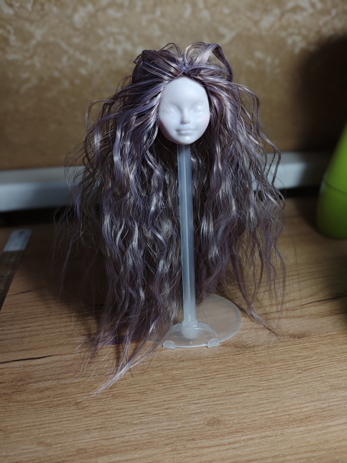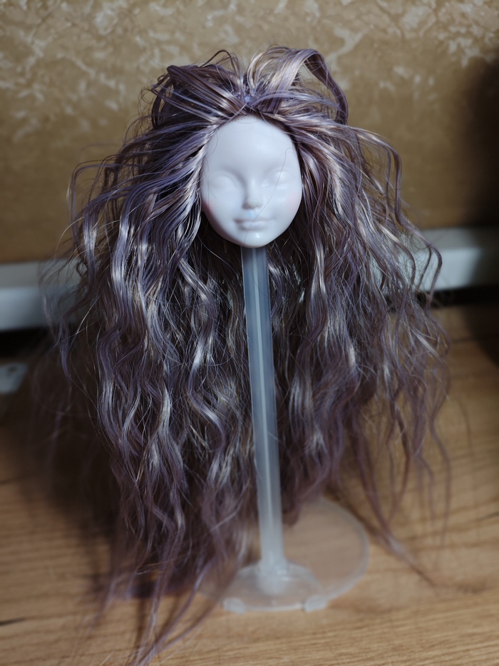 Деву покупали под перерошивку, парик видели и четко понимали, что под ним будет беда и очень хотелось чтоб она же и победой стала, ободранных кукол в нашей коллекции не воспринимаем, во всем родном такая кукла есть. Цветом волос поразил OOAK американского мастера и жена целенаправленyо искала такие же волосы, и спасибо огромное мастеру Марии прошившей куклу, мечта сбылась! Глаза шлифованные, восстановленное покрытие без царапин. Слезы и звезды отливаем сами любого фасона и цвета. Отмывали, оттирали и ремонтировали трещины, очень долго подбирали образ и в итого все равно боулинг)