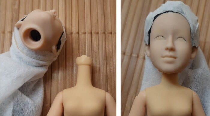 Он позволяет голове вращаться и наклоняться. За неимением подобного, обратилась к шурупу. Да, именно, отрезала остатки шарнира и вкрутила в шею подходящий по размеру шуруп. Но, так как голова на нем болталась, было решено зафиксировать все полиморфусом (пластик, который становится мягким и пластичным при нагревании и твердеет при комнатной температуре), нарастить необходимый объем, чтобы голова держалась в том числе и снизу. И заодно скрепить пошедшую с одного бока по шее трещину...
