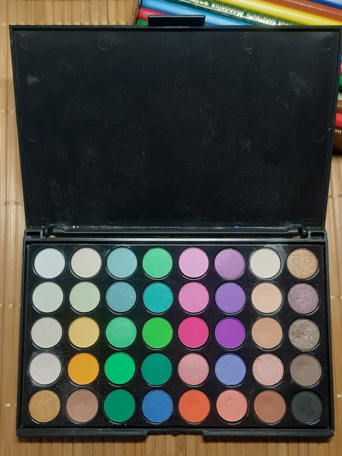 Блашинг я делала второй раз в жизни и использовала для этого старую китайскую палетку матовых теней. Вот такую: