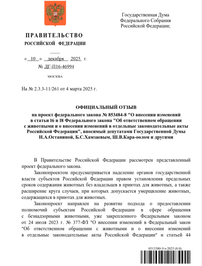 Напомню, что в марте этого была создана рабочая группа по разработке мер защиты детей от нападения безнадзорных собак. Достаточно быстро внесли законопроект № 853484-8. Из пояснительной записки: