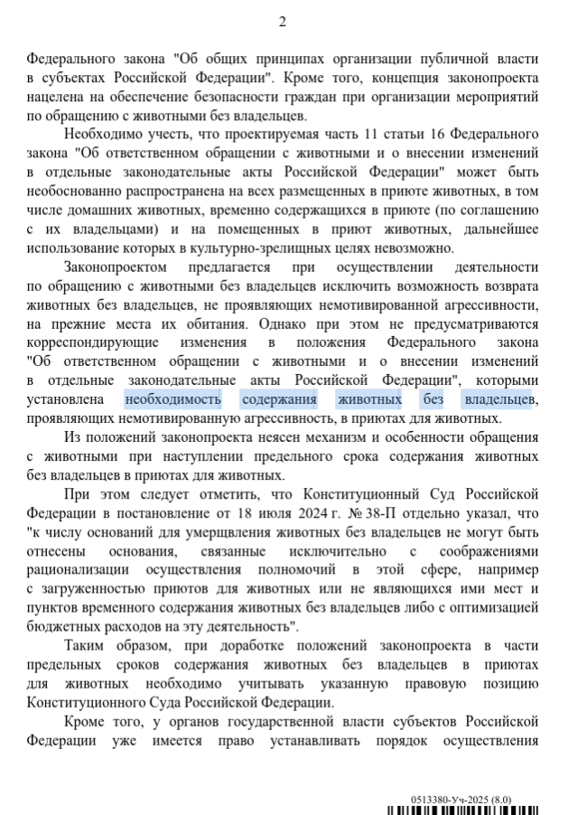 Получается, что в законопроекте нужно дословно прописать ту самую необходимость содержания животных без владельцев, указав опасность для жизни и здоровья граждан. Я не юрист, но что ещё можно внести, чтобы достучаться до верхов?
