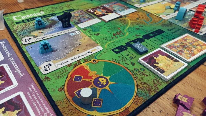 Игра длится в течение 5-8 раундов. С 6-ого раунда кубик определяет, закончится ли игра. Да, с маленьким шансом, но всё же. И такой вариант окончания игры мне очень не нравится. Ты что-то там себе планируешь, а тут уже конец игры. Первую партию мы закончили на 6-ом раунде. Обидно.