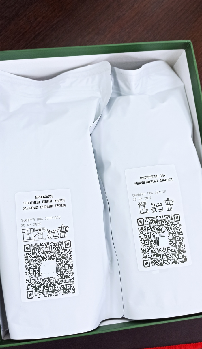 Для маленького частного заказа выбран сорт уровня fine commercial Бразилия желтый бурбон для употребления в автоматической кофе машине и несравненный гигантский Никарагуа Марагаджип 19+ в светлой обжарке для употребления в воронке и турке. Кофе аккуратно обжарен, упакован и получен заказчиком в день заказа.