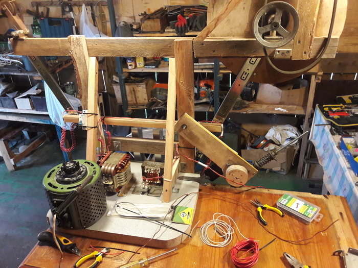 Сварки у меня нет, как нет и умения варить. Потому основание делал из деревяшек собранных так же по гаражу.