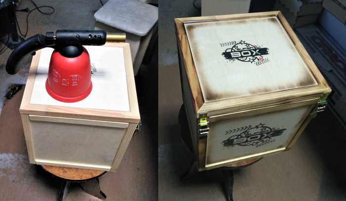 Берём горелку, и обжигаем как хочется, например по краям, придавая иной вид. Ящик завершён. По времени, не торопясь уходит около двух часов.