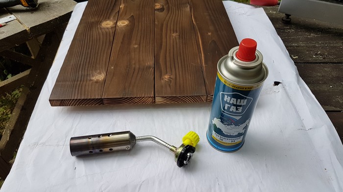 В принципе, обжигать доски можно и просто в огне, на том же мангале - пробовал как-то, но с горелкой удобней, быстрей и лучше контроль. Стоимость насадки +- 1500 руб и газ в баллончике 50-100 руб.
