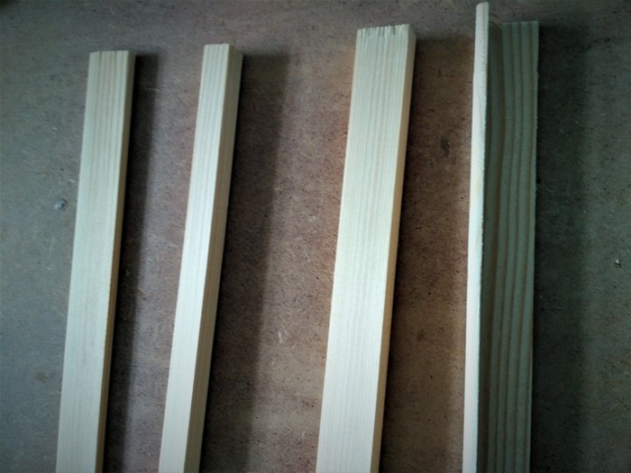 Из бруса (самому это слово мозолит мозг, не знаю как по другому, планка?) которая размером 5х19х2200мм, нарезается восемь отрезков по длине 230мм и по концам закругляется, например на наждачке.