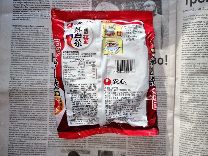 Процесс готовки описывать не буду, а прикреплю скрин с переводом с упаковки. Лишь добавлю, что я держал в кипятке 6,5 минут.