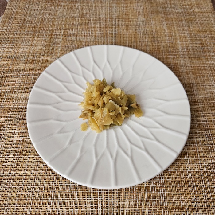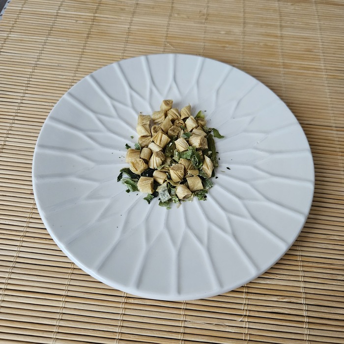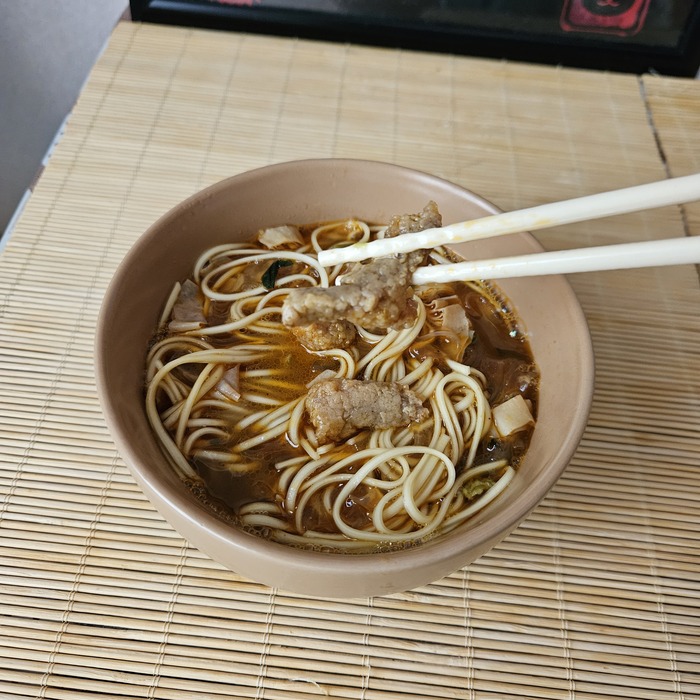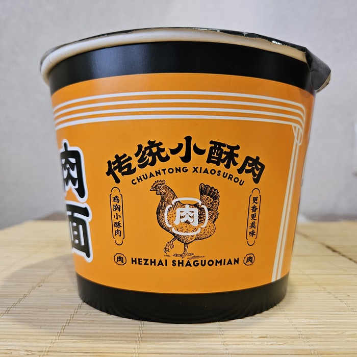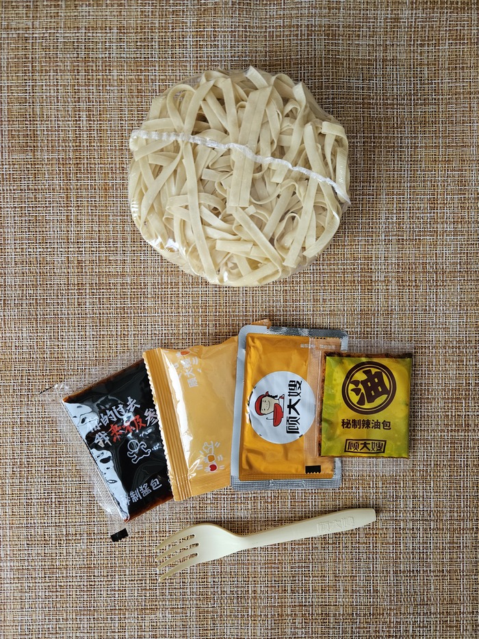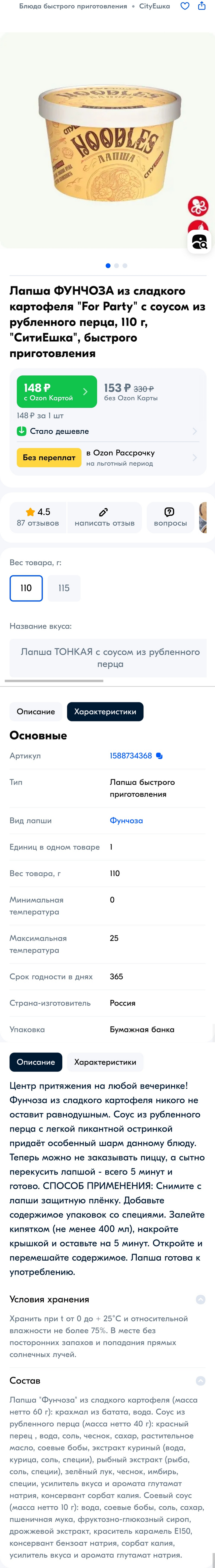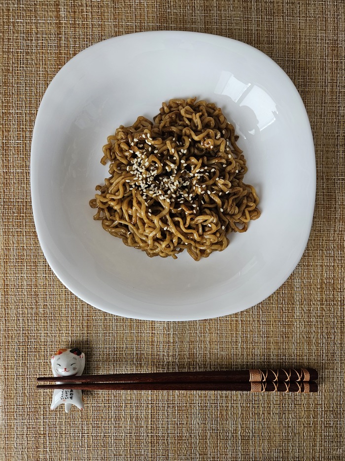 Я впервые вижу не длинную фунчозу, а порезанную чуть ли на вермишель. Соус обычный, сверху арахис, всё таки длинная лапша вкуснее, может по-другому соус в нее впитывается, не знаю. Но неплохо, всё по классике.