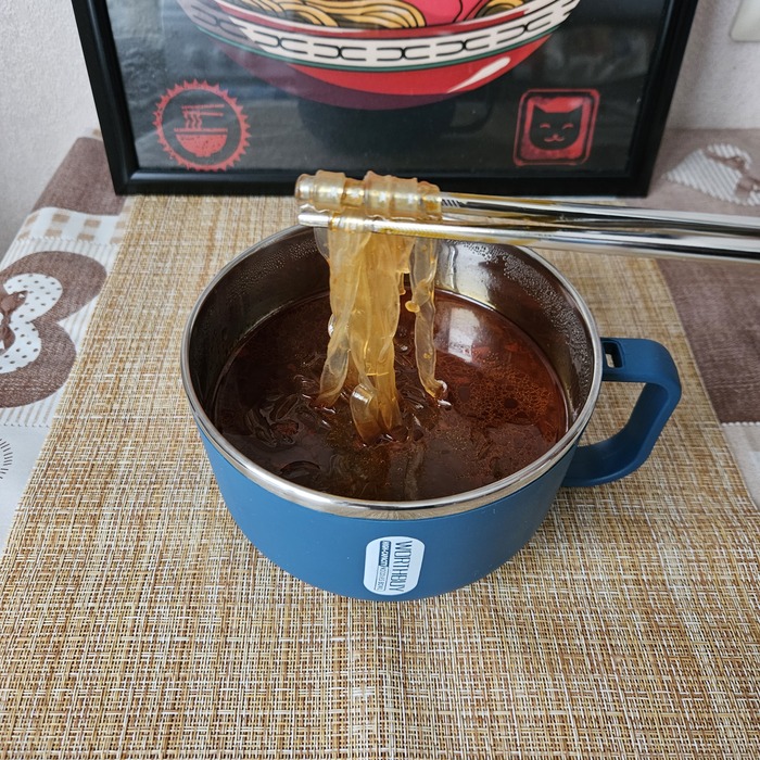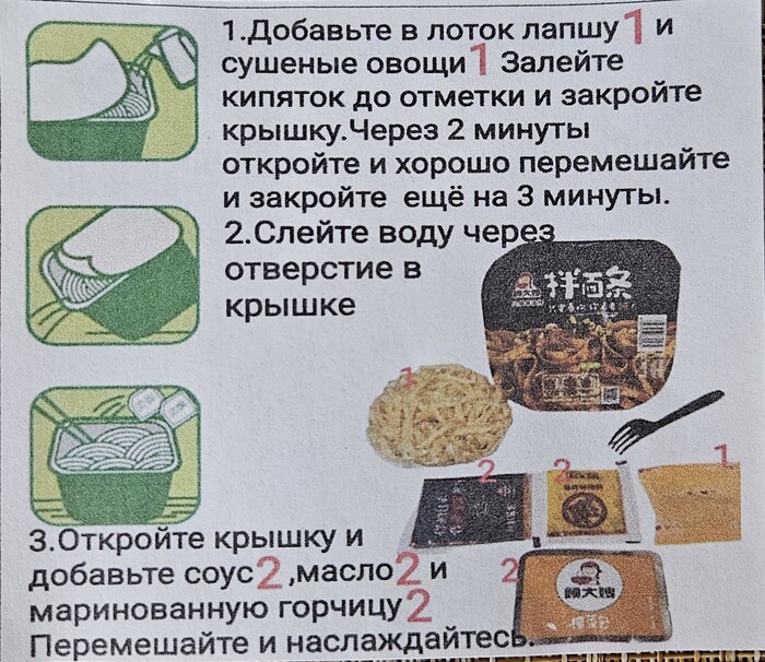 При заваривании фунчозы меня флешбеками откинуло в обзор Маяка, там тоже должна была быть фунчоза, но моя невнимательность решила иначе, залив кипятком лапшу, я туда же вылила все соусы, орехи и специи, а когда осознала что наделала, то передо мной уже стояла коробка с "помоями". В этот раз я следила за собой внимательнее и делала все по инструкции.