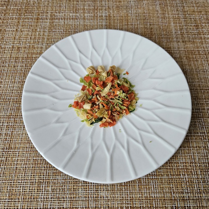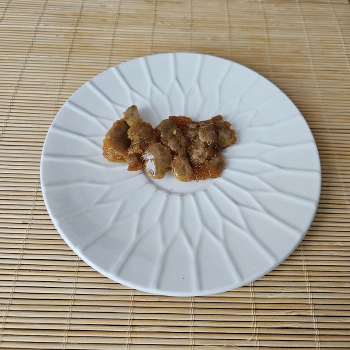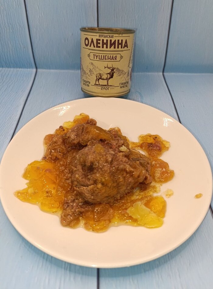 В составе на первых местах идут оленина и конина, это и видно по мясу, оно тёмное, волокнистое и упругое. Даже в таком виде это очень вкусно, баланс по специям, мясо хорошо жуётся, но я потом сделала с ним макароны и это оказалось прекрасным ужином. Рекомендую.