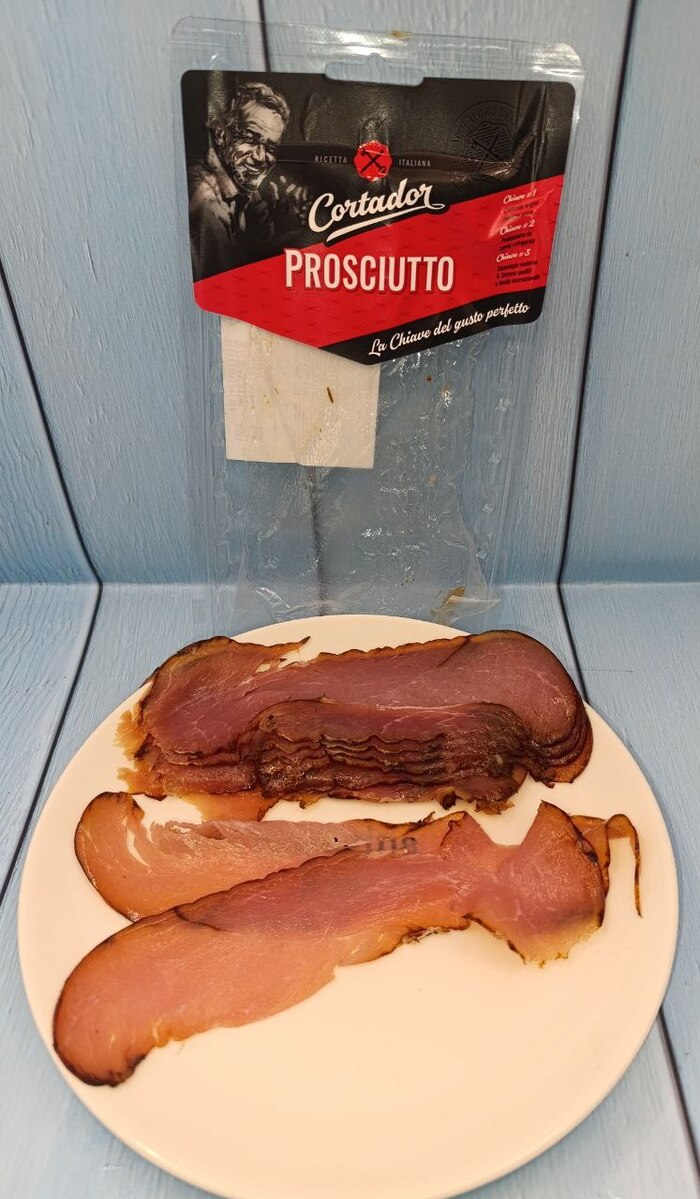 Этот продукт у меня тоже на "перепробе". Обычно я беру прошутто от этой же фирмы в "Ароматном мире", там он стоит где-то 200 рублей, когда я увидела его в КБ за 144 рубля, то конечно же обрадовалась, такая экономия! Но не тут-то было, здесь он отличается, продукт более резиновый, не такой нежный, грубоватый. Я не знаю как это работает, но когда ешь прошутто из АМ, то резко оказываешься Дубаях на яхте, а когда берешь его в КБ, то никуда из своей однушки не переносишься. Продукт не плох, но не ждите ничего особенного.