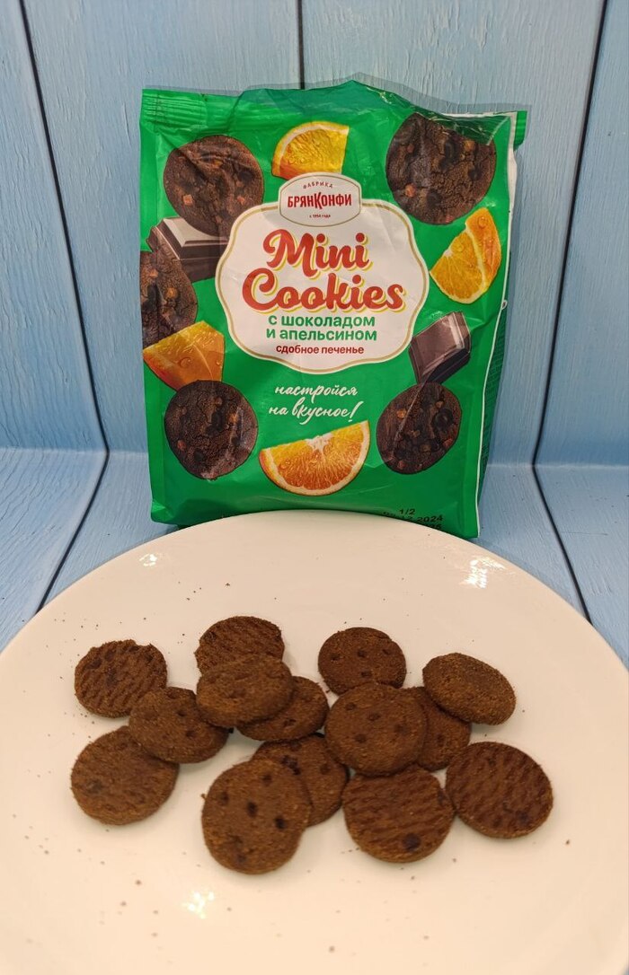 Рассыпчатые шоколадное печенье с маааалеьки кусочками апельсиновых цукатов. Сдобно, вкусно, претензий нет.