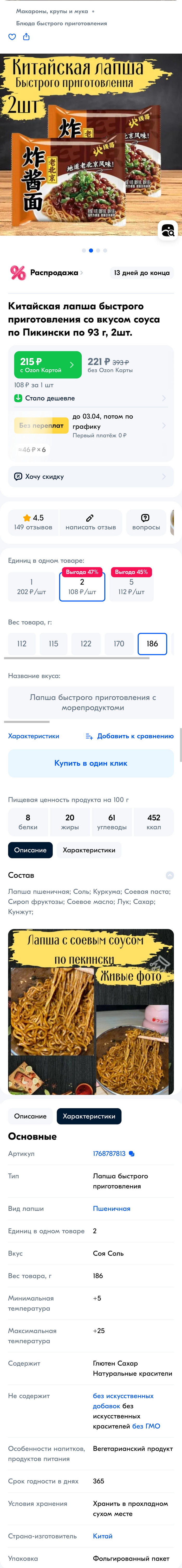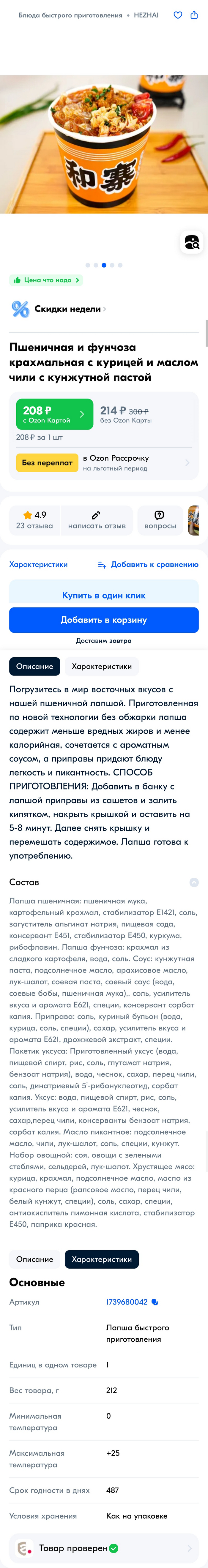 Увидев эту красотку в холодильнике на входе, я сразу поняла что она идёт сегодня со мной. Я люблю пиццу Зотман, но покупала её только уже разогретую в Самокате, в заморозке я взяла ее впервые. 10 минут в духовке и вуа-ля! Начинки очень много, тесто тонкое и хрустящее (в этом и фишка неаполитанской пиццы), слов нет, одни эмоции. Так же радует цена, в других магазинах Зотман стоит около 500 рублей, а здесь дёшево и невероятно вкусно.