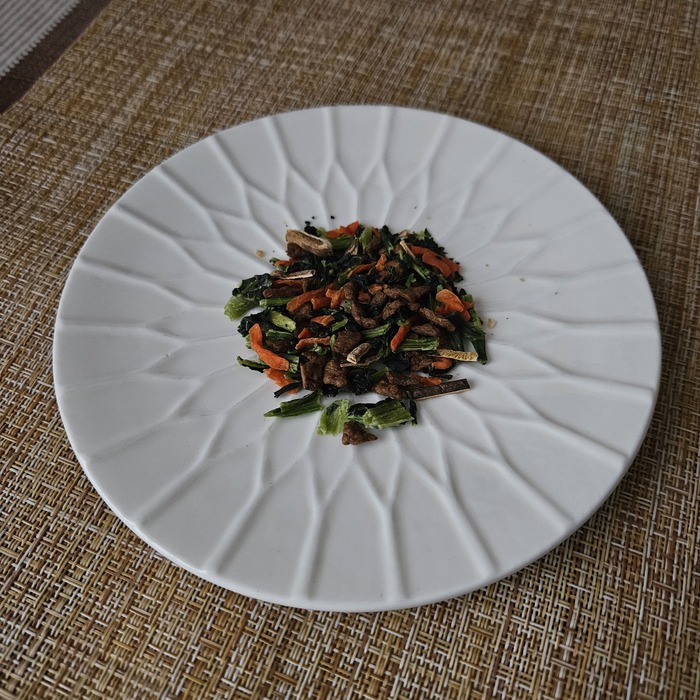 Лапша пшеничная, средней толщины и кучерявости. Пахнет очень необычно, но я не смог определить чем. Как будто какими-то специями. Масса чуть менее 65 граммов.