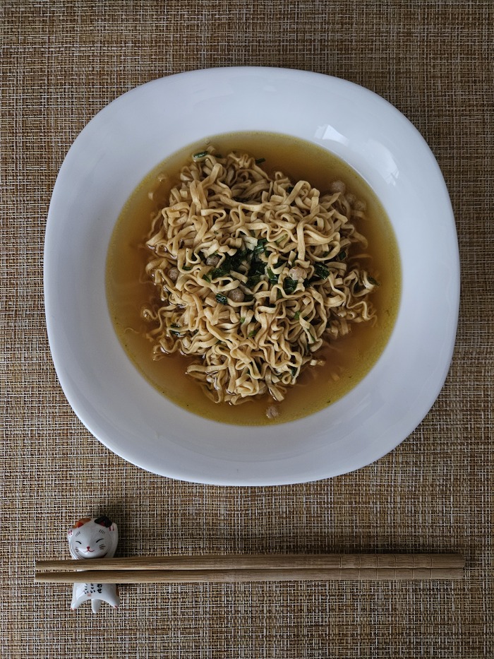 Недостаток всех квадратных брикетов в том, что их трудно нормально положить в круглую тарелку и равномерно залить. Поэтому у Бигбона мне нравится лапша в виде круглых брикетов.