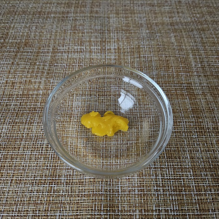 Внутри пакетик с сухой смесью соуса, пакетик масла и лапша. Лапша достаточно твердая, поэтому было принято решение лапшу сварить. Сливаем 2-3 ложки воды в мисочку, замешивает соус и добавляем процеженную лапшу.