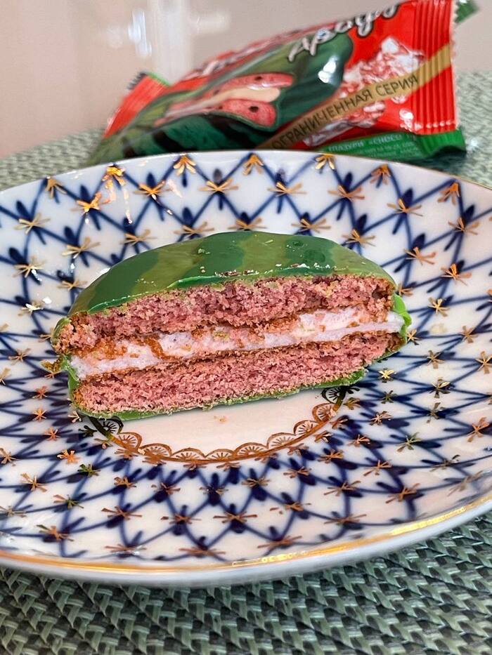 Производитель арбузного чокопая советует попробовать пирожное в охлажденном виде. Что ж, давайте так и сделаем!
