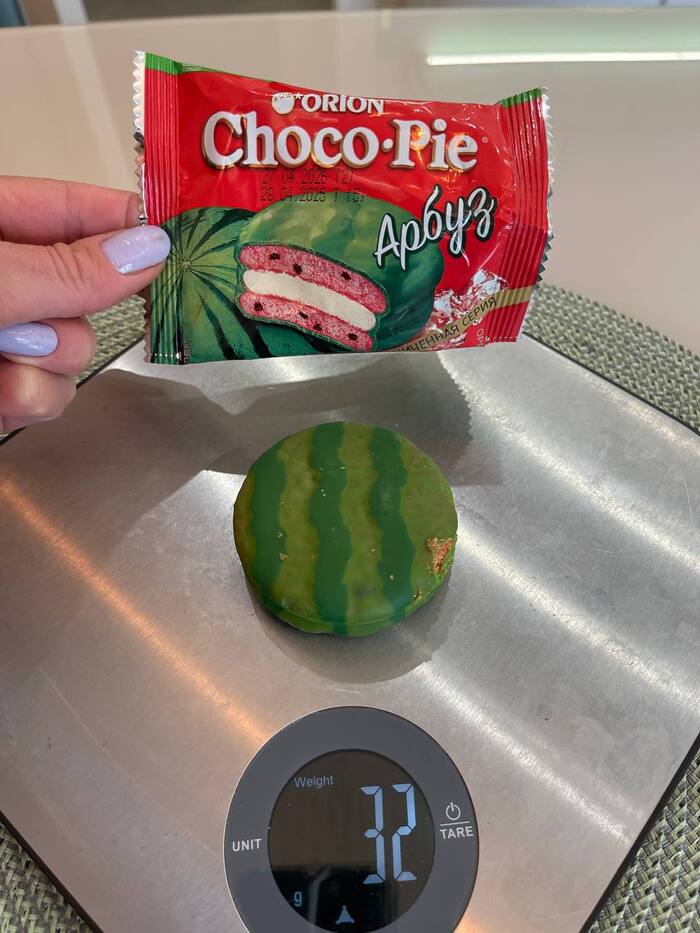 Арбузный чокопай был куплен в «Пятёрочке» за 125 руб (6 штук)