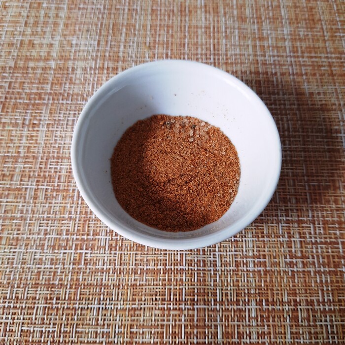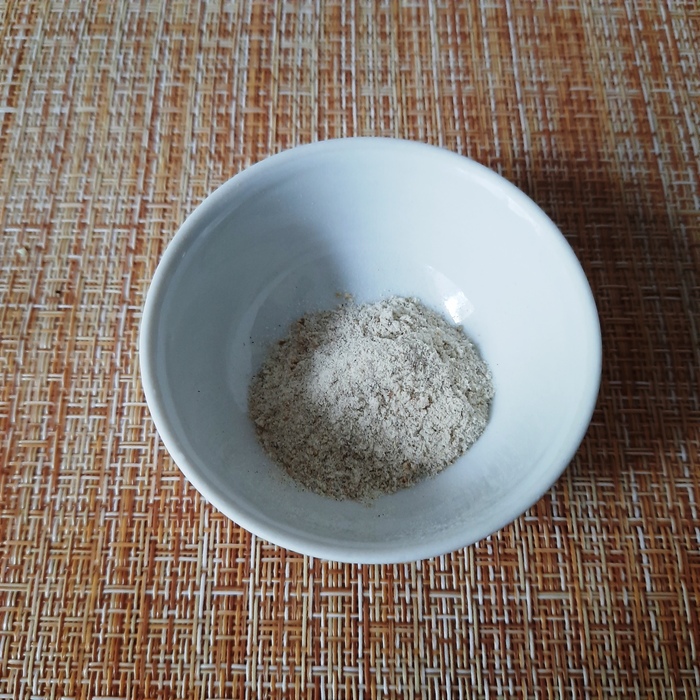 В следующем пакетике сухая приправа. Светлая, порошкообразная. Пахнет чёрным перцем и еще какой-то пряностью, которую я не смог идентифицировать. Похоже на душистый перец, но не уверен.
