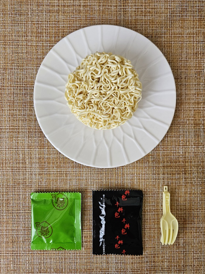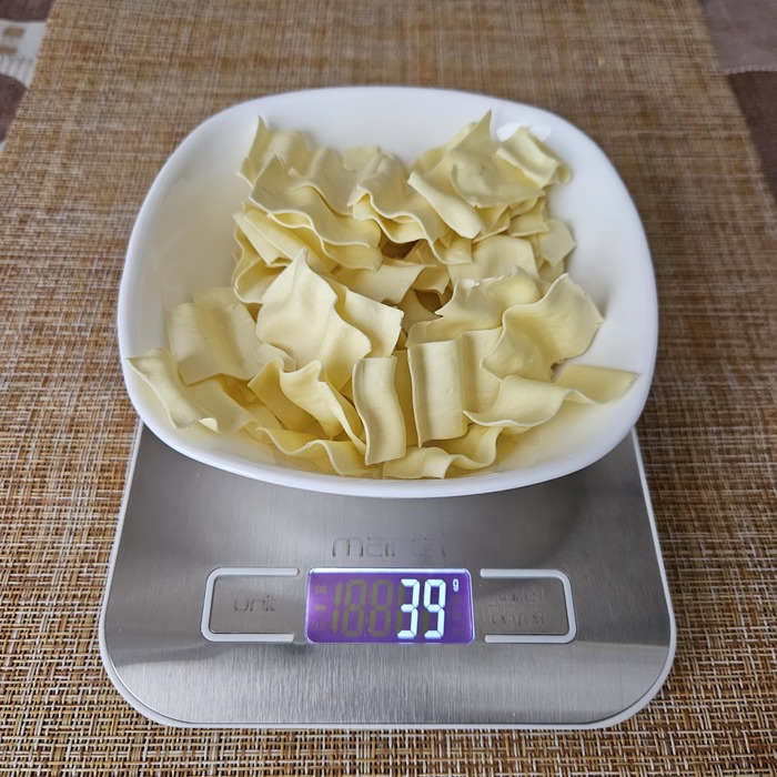 Лапша выглядит и пахнет очень неплохо. Толстая, пшеничная, несколько бледноватая. Масса около 90 граммов.