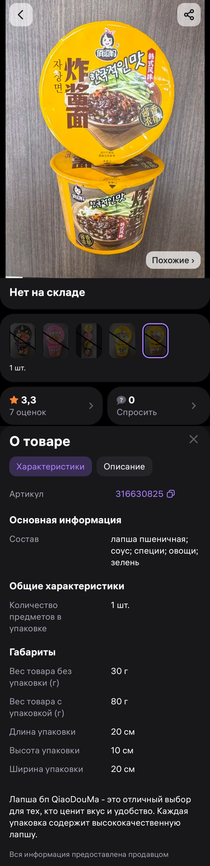 Скрин с ВБ и ссылка для заинтересовавшихся. https://www.wildberries.ru/catalog/349516553/detail.aspx. Кстати, лапша даже немного подешевела.