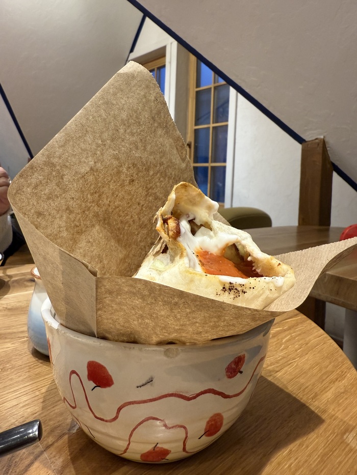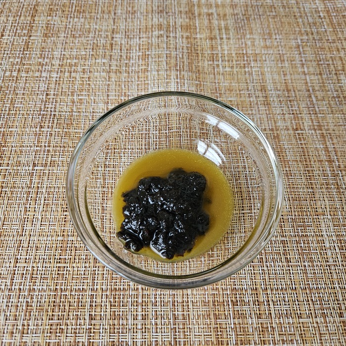 Соус состоит из двух фракций. Более жидкая жирная часть и кусочки чёрного молотого перца. Запах фантастический! Но мне, почему-то, и тут мерещится сычуаньский перец.