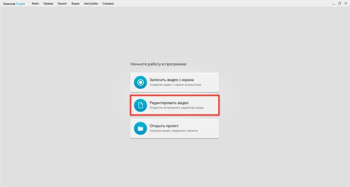Откройте Экранную Студию и загрузите ролик через кнопку «Редактировать видео».