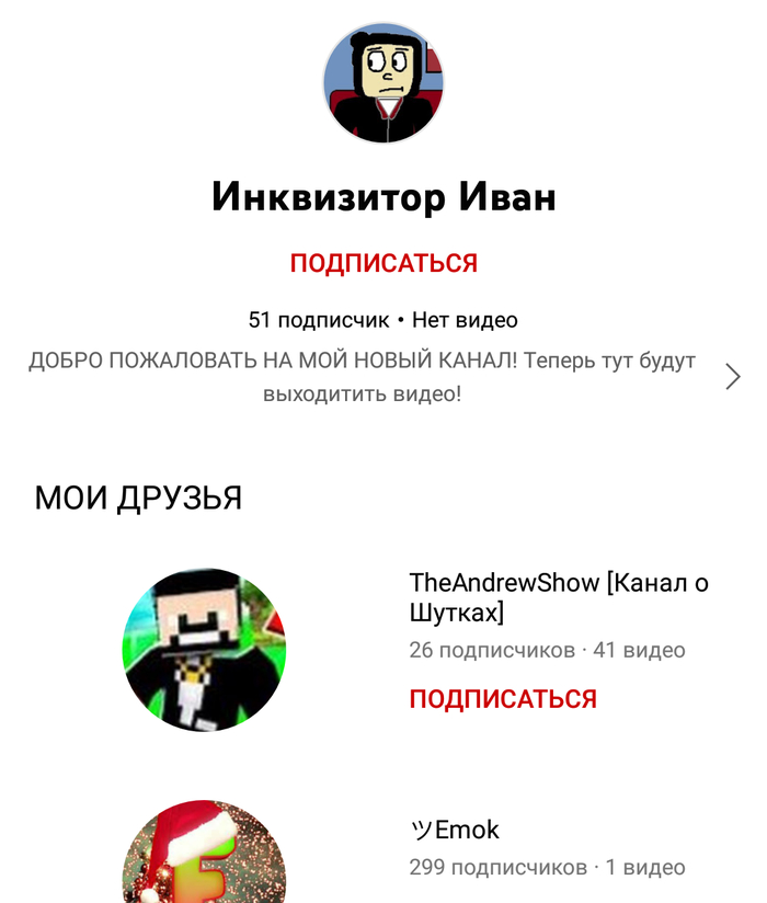 Начал он свой путь в декабре 2018 года с канала "TheAndrewShow [Канал о Шутках]", где выкладывал видео с лицом и новости Тома и Бена. И получил 25 подписчиков, забросил в марте 2019 года.
