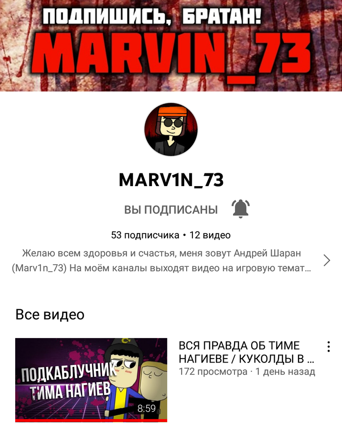 А так, пожелаем Марвину лучшего и успехов в продвижении своего канала, надеемся на лучшее! И спасибо всем, кто прочитал этот пост!