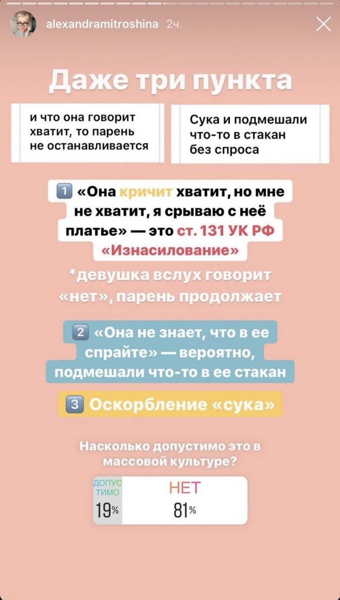 2. Судя по «жадный» и «нет денег», свидание было в формате «погуляли в парке или на выставке бесплатно». Т.е. она ходила с этим не нравящимся ей мужиком, слушала про его больную спину, выспрашивала, почему он не ходит в спортзал, и потом пришла домой голодная и без кофе поныть на кухоньке в телефончик о том, какие мужики плохие пошли и как они не тянут самодостаточных женщин. Судя по «боевой раскраске» и яркой одежде на всратом фоне, видео с обидками записано сразу после неудачного свидания. Как говорится, и вот ещё один день оказался бесполезной тратой макияжа, обидно.