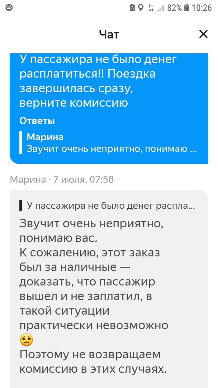 ЗЫ,2 Яндекс списал деньги за не состоявшуюся поездку, и жалобу проигнорировал, хотя и дали промокод,(странно). Но мне как то не уютно от мысли, что я заплатил человеку который меня побил и некуда не отвез.