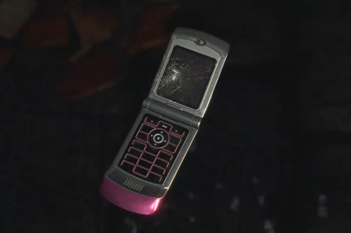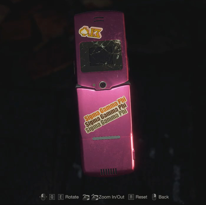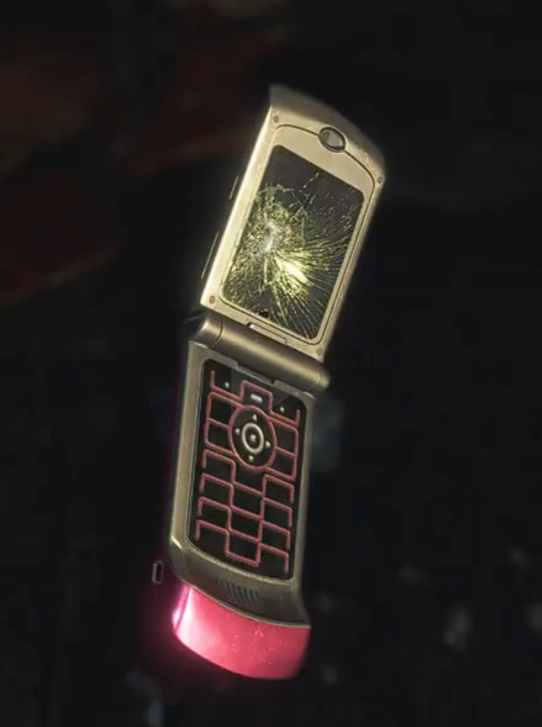 Преодолев длинную череду трудностей и испытаний, вы наконец оказываетесь внутри церкви, где культисты удерживают Эшли. В помещении можно увидеть лежащий на полу розовый раскладной телефон и, при желании, рассмотреть его детальнее в отдельном окне. Очень сильно он напоминает Motorola RAZR V3 - телефон, вышедший в 2004 году. В это же время, замечу, происходят события игры.