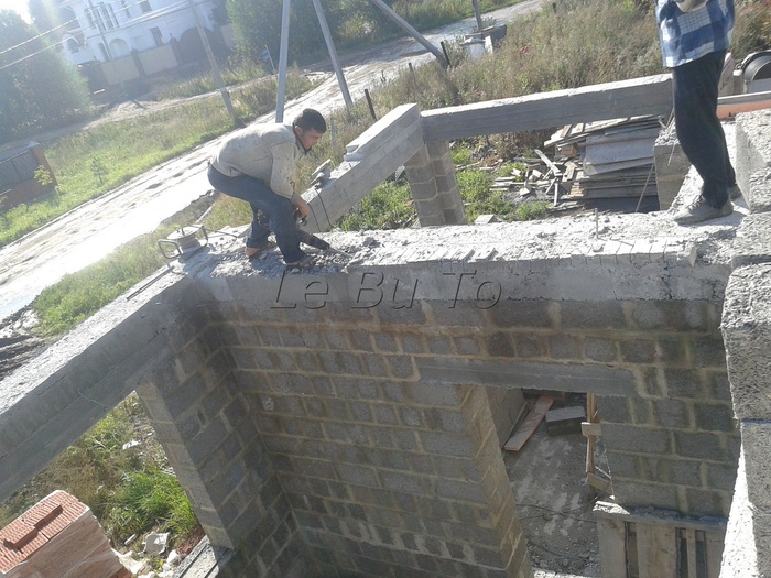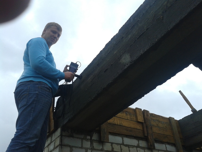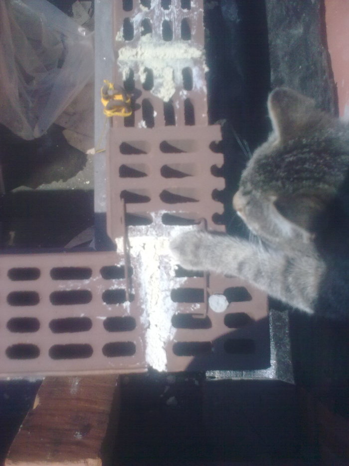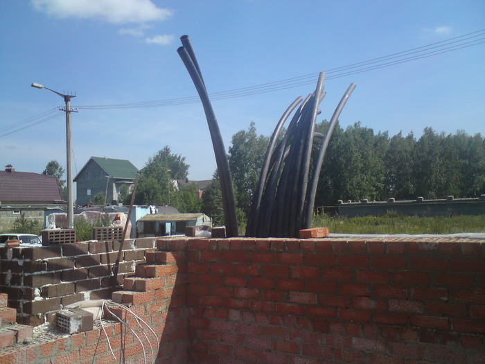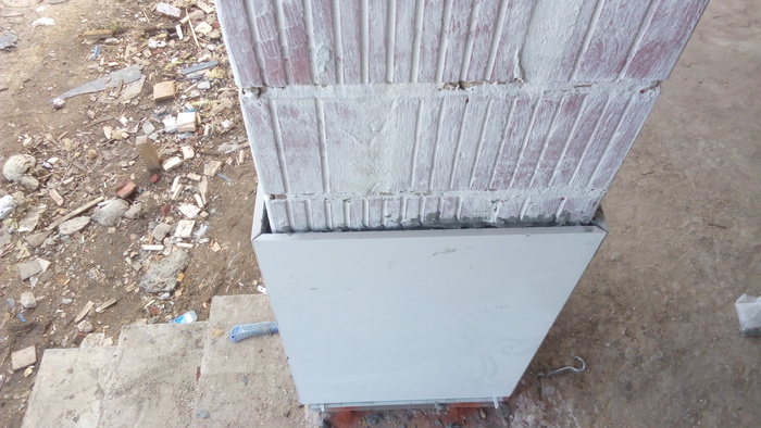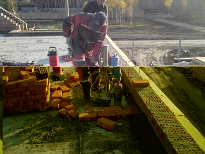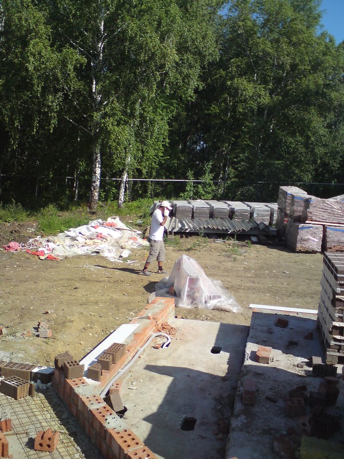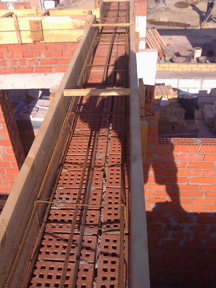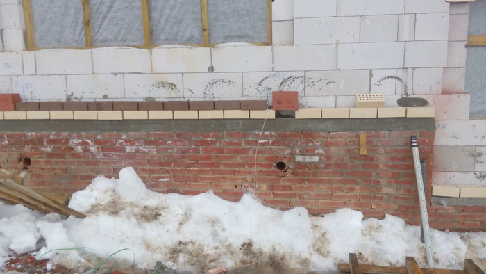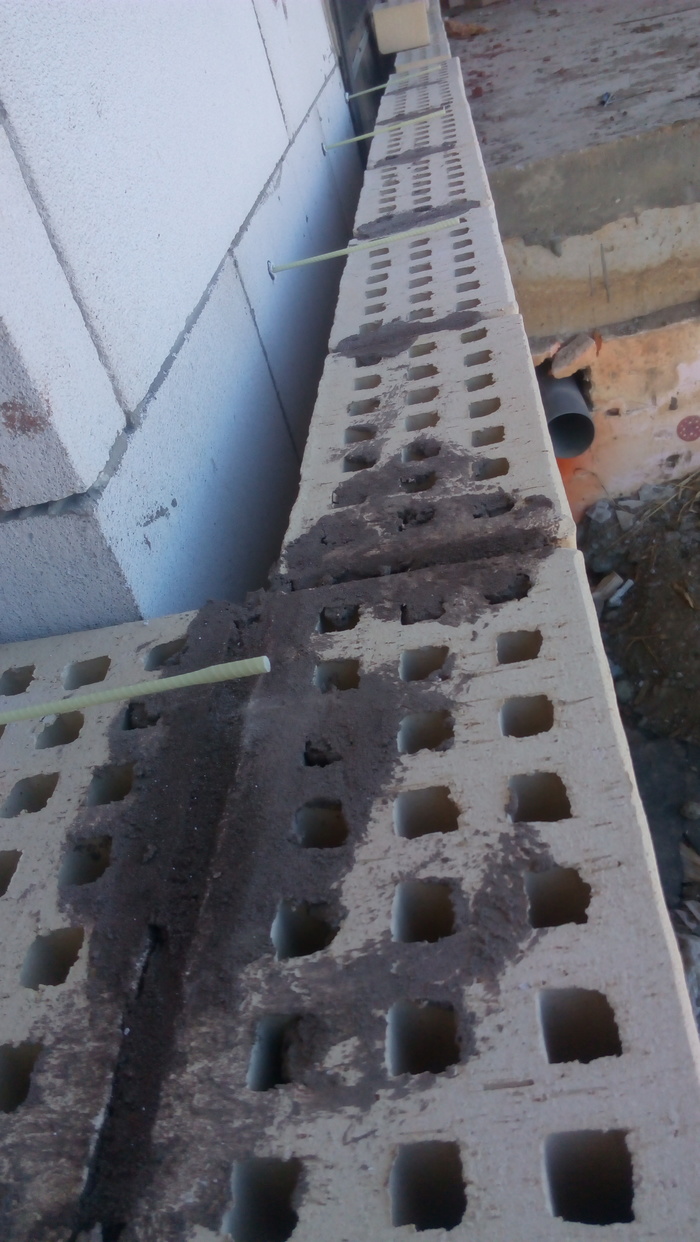 Тут сняли плиты и подшаманили перелитый армопояс. Бывает в жизни огорченье-вместо хлеба ешь печенье и наоборот. Это у летней кухни уголок.