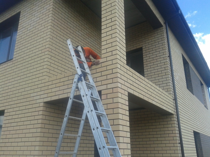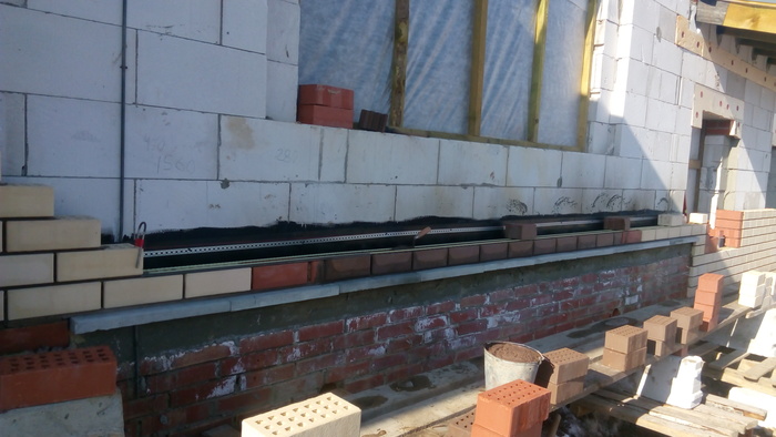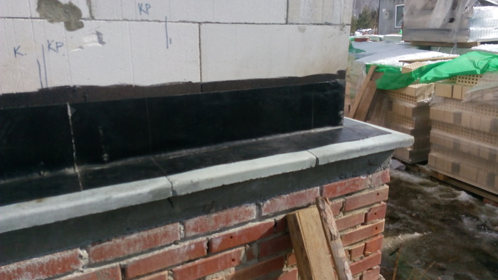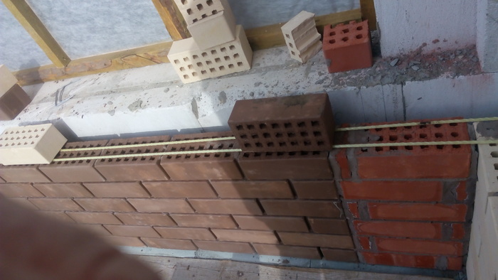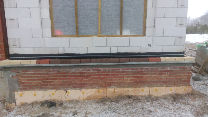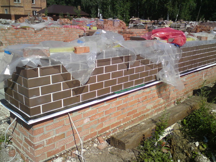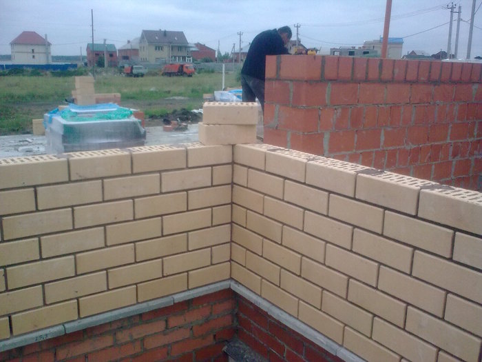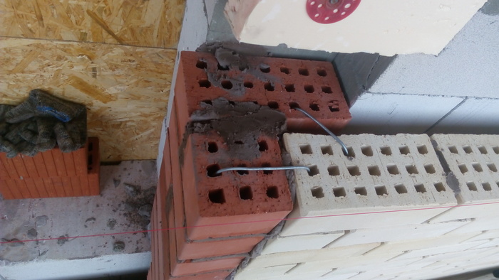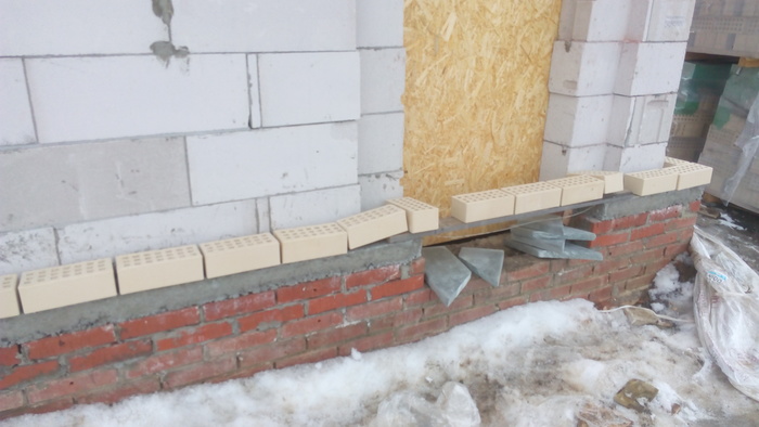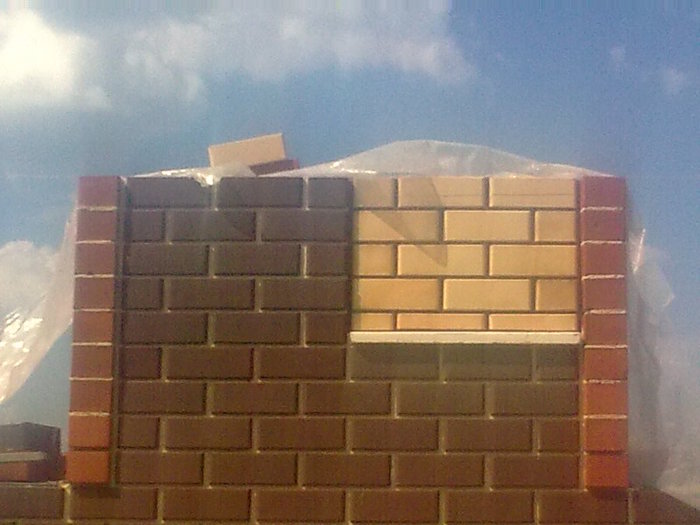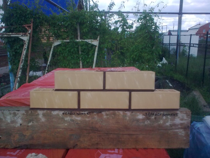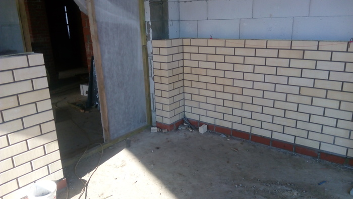 Ну и здесь пробуем цвет затирки. Вроде согласовано.Углы дополнительно пеноплексом утепляли.