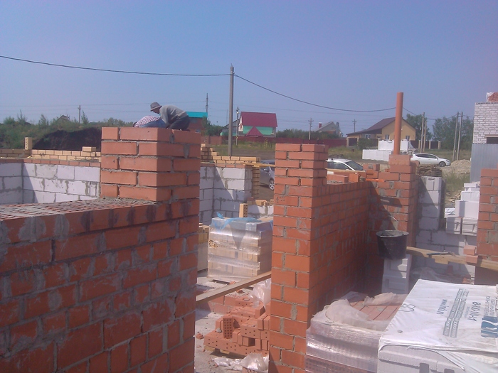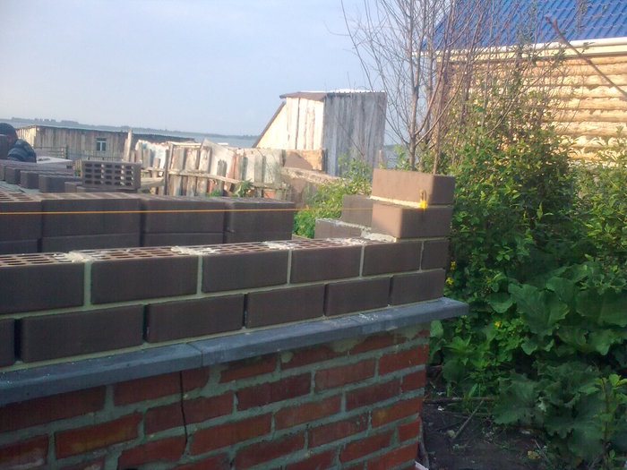 Так простенок выглядит между гаражем и домом. Крутотень. Ручная работа. Кто-то вянгает типа кидают на стройке. Так делайте такую работу, чтобы за вами хрен кто смог повторить. Вот и ответ на вопрос почему меня не кидают. Всё просто до безобразия.