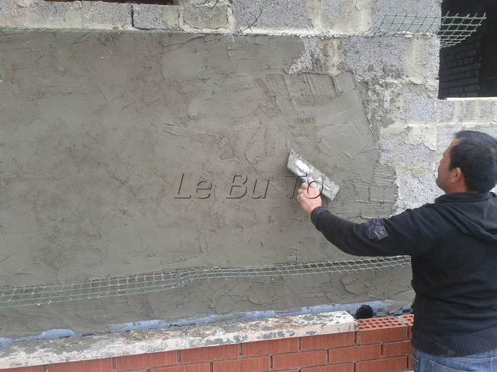 Далее чтобы не продувало через арболит при его усадке, мажем как бог на душу послал. Или аллах, смотря кто работает.