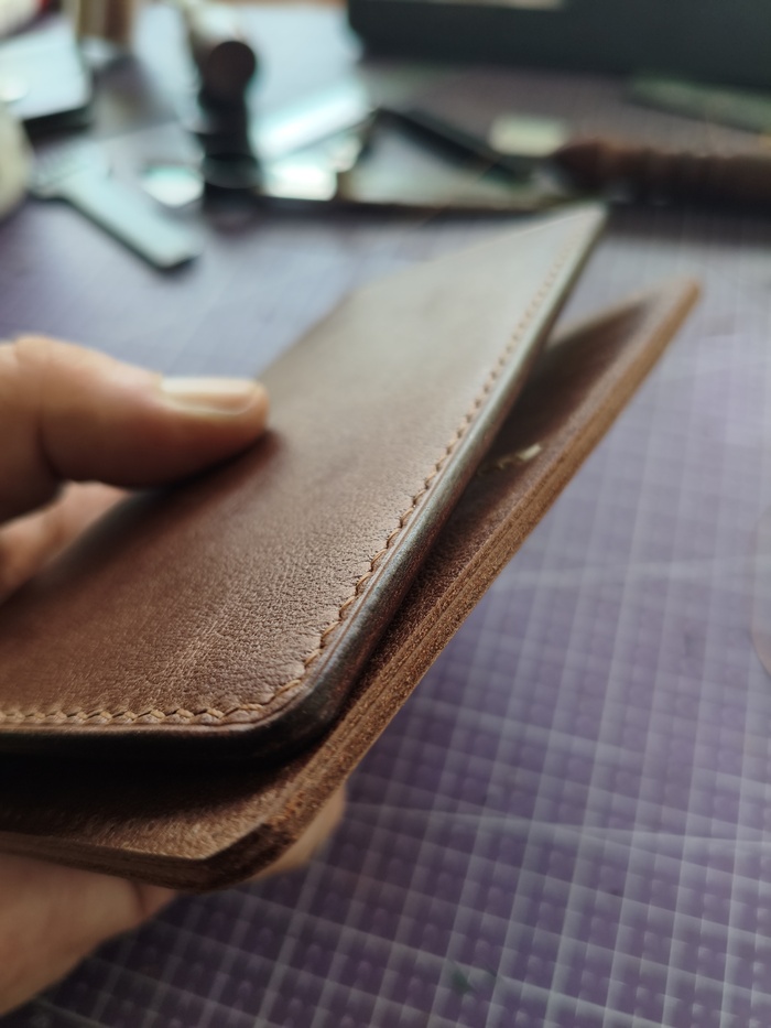 А дальше подрезаю все тетрадки обычным ножом для кожи чтобы получились ровные края. При сшивании даже по старым отверстиям что-нибудь куда-нибудь обязательно уезжает. Якорь мне в транец, это какой-то кошмар! Страницы то рвутся, то заламываются, нож тупится так, будто я шкуру кабана режу, а не бумагу. (из титана их что ли делали) В итоге получилось не супер прям ровно, но более-менее. Посмотрел, сколько стоит нормальная приспособа для резки книжных блоков.. Эх, ну ножом, так ножом.