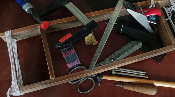 А вот практически весь инструмент, что я использовал. Как видишь, набор не так чтобы какой-то лихой. Так что, если ты, дорогой товарищ, испытываешь непреодолимое желание помочь материально, поддержать, так сказать, рублём, там ниже приделан виджет - не в чём себе не отказывай. А может, у тебя где-то валяется ненужный гобель? Или книжный пресс? Ну мало ли.. Дай знать. А может, ты хочешь себе такую же, м? ;)