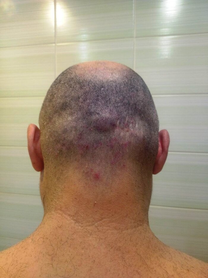 На третий день после операции меня привезли в клинику для перевязки. Всё прошло быстро и безболезненно, но лицо к тому времени уже слегка опухло — нормальная реакция после пересадки. Как ни странно, большинство людей на улице не обращали на меня внимания, хотя на голове был явный "след от битвы". Да, в Стамбуле привыкли все, там каждый 10-й человек идет с пересаженными только что волосами!)