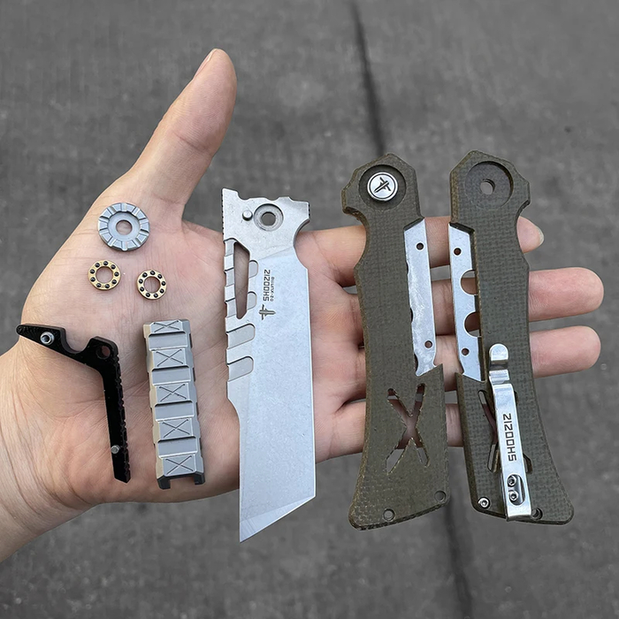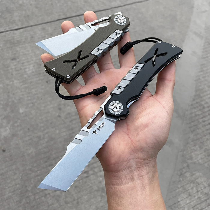Складной нож SHOOZIZ XUN118 разработан как надежный инструмент для требовательных пользователей. Его клинок изготовлен из инструментальной стали D2 — это высокоуглеродистая сталь, легированная хромом, которая славится превосходным удержанием остроты режущей кромки и высокой износостойкостью.