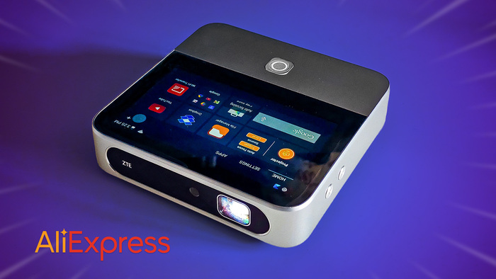 Далее идет уникальное гибридное устройство, сочетающее в себе портативный DLP-проектор и полноценный Android-планшет с 5-дюймовым сенсорным экраном. Это позволяет управлять проектором, устанавливать приложения из Google Play (например, Netflix, YouTube, офисные программы) и просматривать контент напрямую, без подключения ноутбука или смартфона.