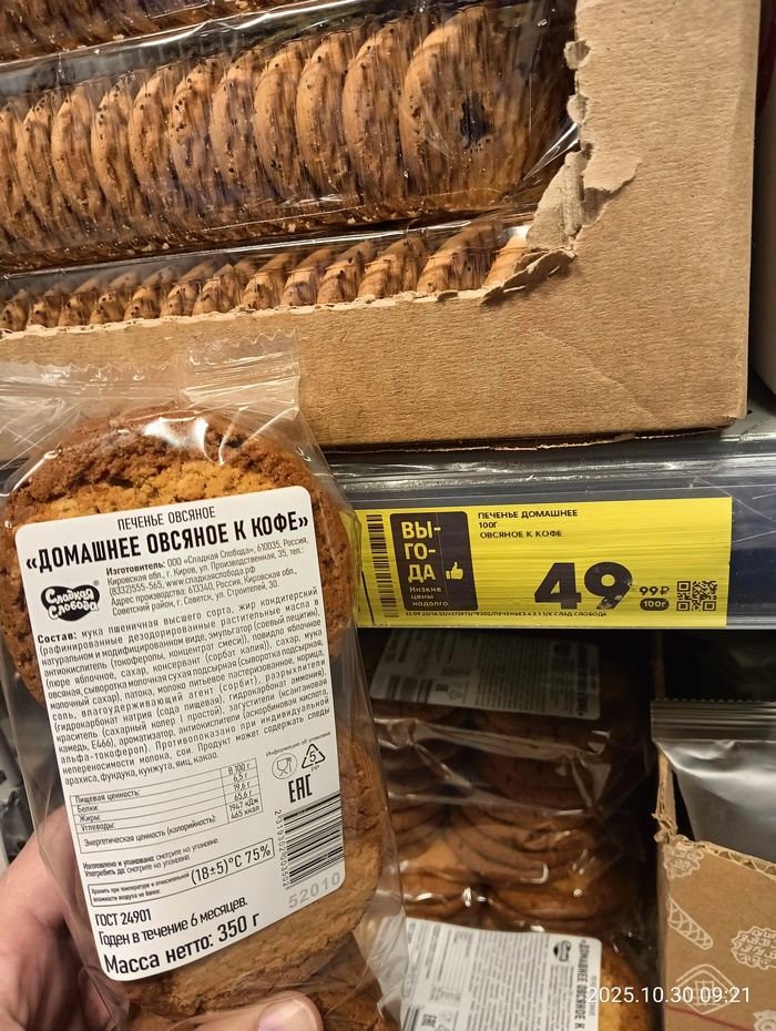 Заскочил в пятерочки, схватил печенье к кофе. Глянул ценник, вроде и нормально по цене. Заодно пару бутылок молока.