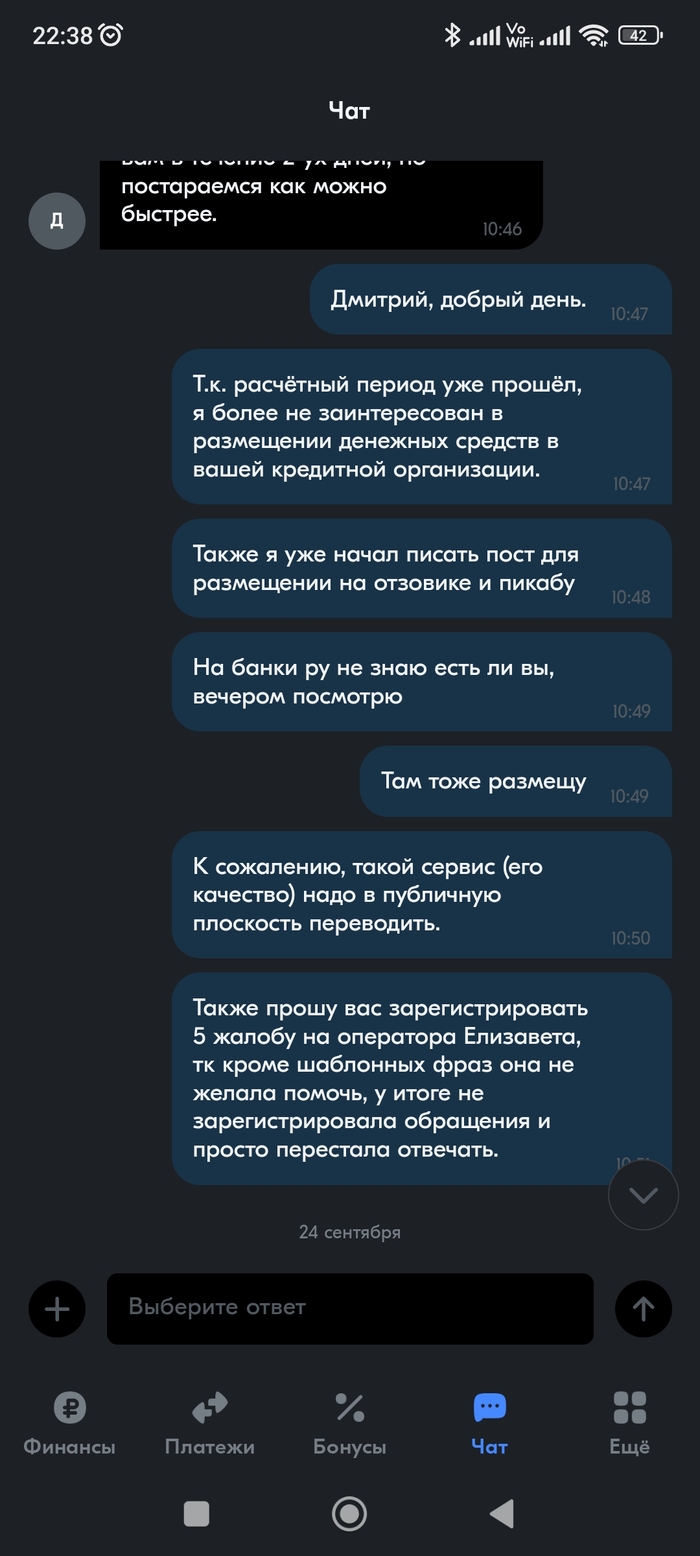 Я не призываю ни к чему, кроме одного - думайте, думайте и еще раз думайте с кем работаете. Я же работать с этим банком не буду никогда, ни за что и ни в каком виде. Равно как и несколько моих знакомых и друзей, которые увидев переписку и результат - подали заявления на закрытие счетов.