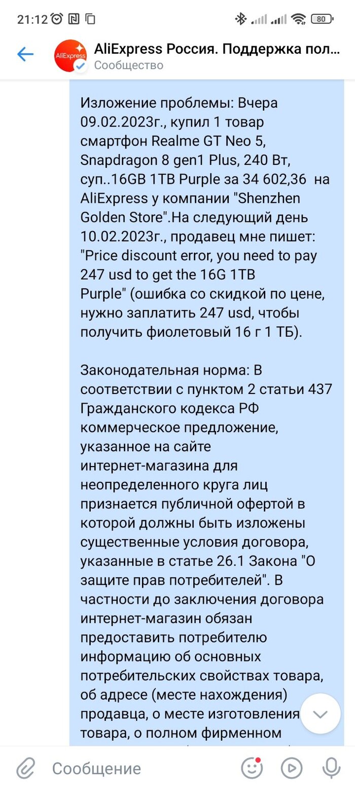 Ладно, техподдержка Алиэкспресс мне в помощь. Но нет, трыжды мне предложили договориться с продавцом. А продавец уже даже и не отвечает.