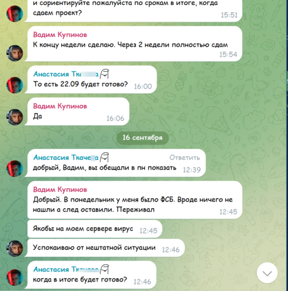 Вадим взялся за работу, далее мы уже общались в Telegram.