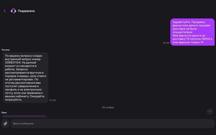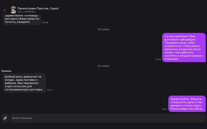 Объясняю, что заказ создан на основании заверений и чётко обозначенных условий продавца (включая сроки доставки), и что ПОСЛЕ Нового Года, мне этот комплект мягко говоря не так интересен (мне же надо посмотреть новогоднее выступление нашего Гаранта Конституции, да ?, тем более в HD качестве).