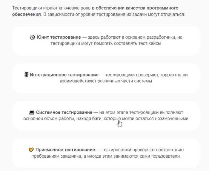 А теперь перейдём к обучению. Решила я, значит, стать тестировщиком. Могу поаплодировать, запарились ребята знатно (ну конечно, на кону такая выручка, почему бы не попотеть). Именно обучение тестировщика составляет из 4 блока и в каждом блоке по 3-4 урока (даже с видеоуроками).