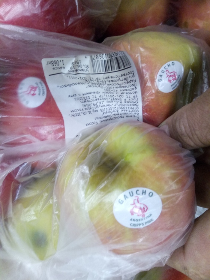 И все бы ничего, да только в Аргентине на свежие кабардинобалкарские яблочки этикеток наляпали...
