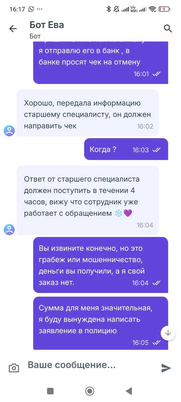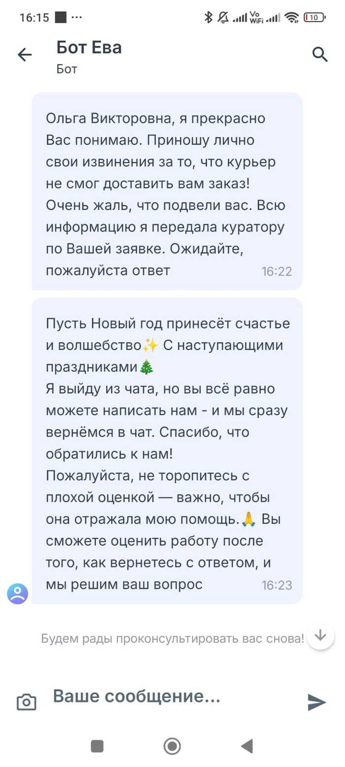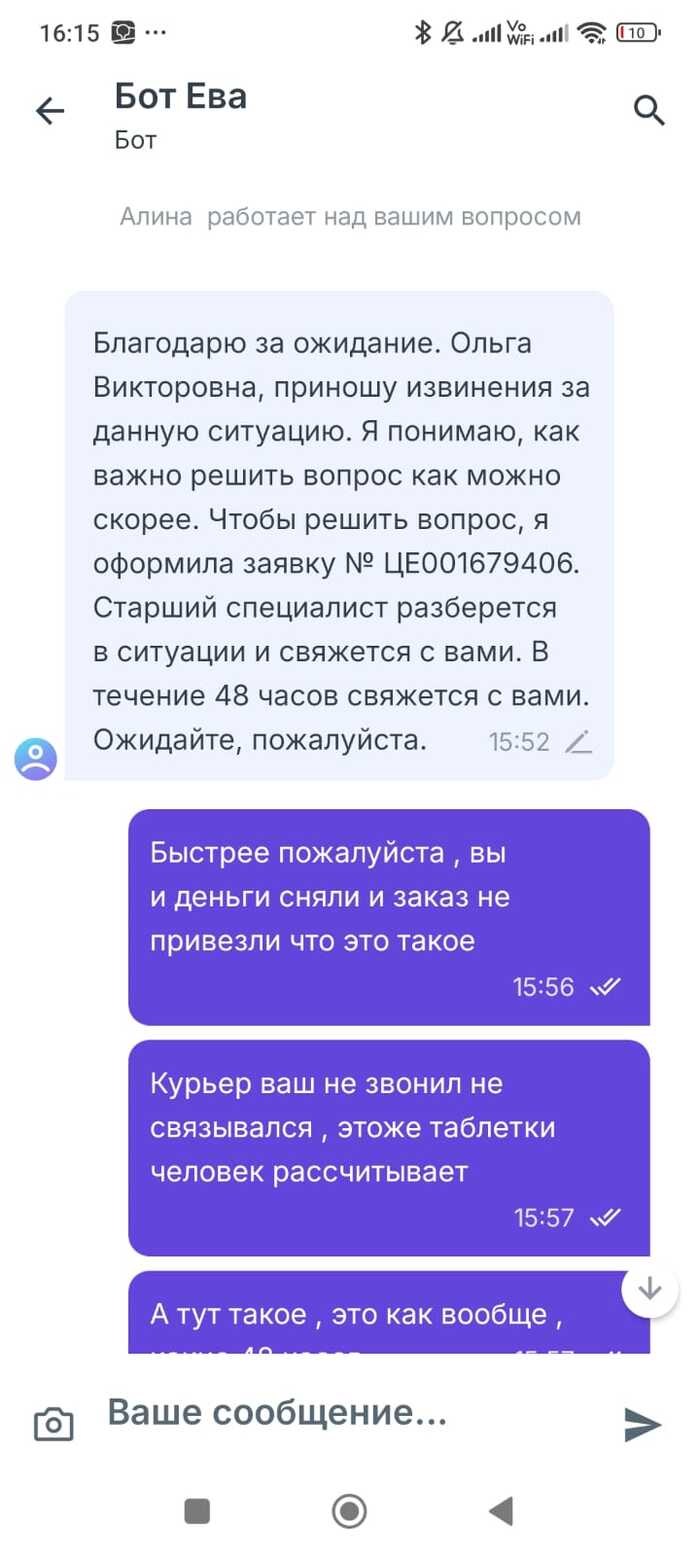 31.12.2025 у детей поднялась сильно температура, как на зло все лекарства закончились. Живем за городом, решили заказать лекарства через Еаптеку, раньше постоянно пользовались и проблем не было. Доставка быстро и удобно. Обещали привезти заказ до 17:00. И вдруг ближе к 17:00 статус доставки меняется на доставлено, деньги списаны естественно и мы сидим в недоумении. Жена пишет в поддержку, там отвечают, что курьер это сделал случайно, и доставка будет! Сидим ждем и ни ответа ни привета как говорится. Так и встретили Новый год с температурой и в плохом настроении, за что отдельное спасибо Еаптеке!!! Поддержка кормит завтраками, отправляют к старшему специалисту, но видимо тот уже наотмечался и ему срать на клиентов!)) Пришлось 1 января утром ехать в ближайшую аптеку, а это я вам скажу тот еще квест, тк ближайшее время открытия было 12:00 пришлось ждать пару часов открытия и ехать обратно, вот пол дня и прошло. Слава богу температуру сбили, детям лучше, душа спокойна. Сегодня уже вечер 2 января, мы до сих пор без лекарств от Еаптеки и без денег, вот такая история как нас ограбили можно сказать на Новый год. Будьте бдительны уважаемые читатели, везде обман в наше время!